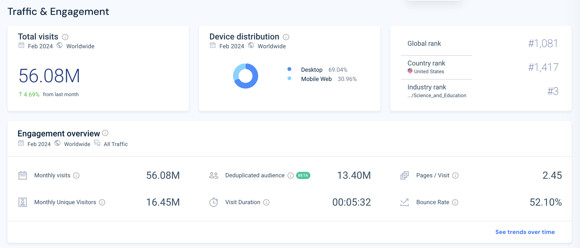 에세이 작성이 잦은 18세에서 24세 사이의 대학생 사용자 비율이 가장 높고, MZ세대가 서비스의 주된 타깃층인 것으로 보인다.
