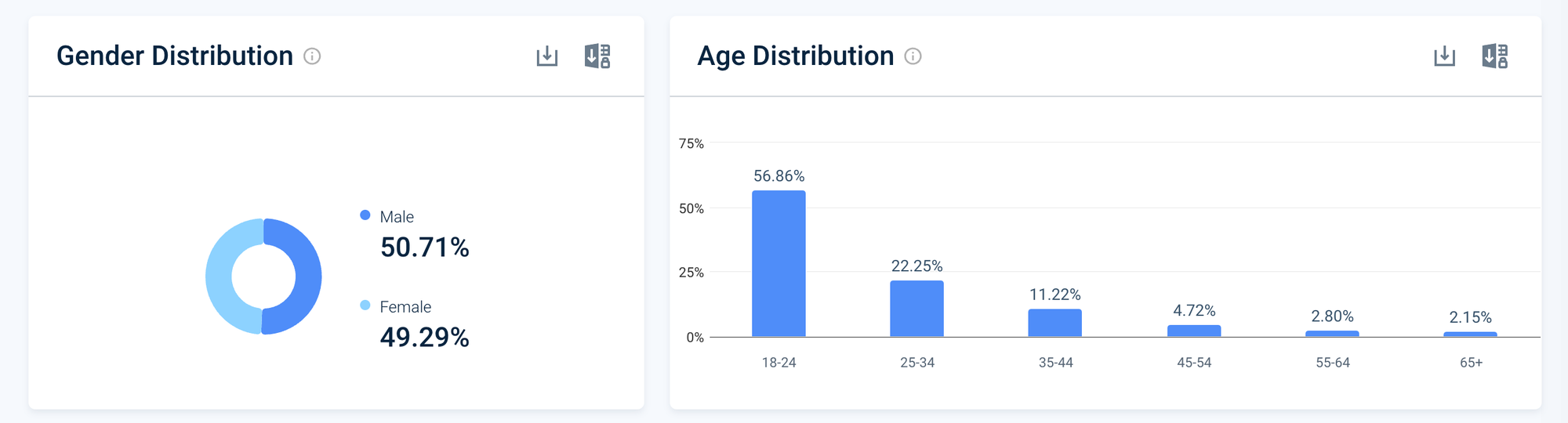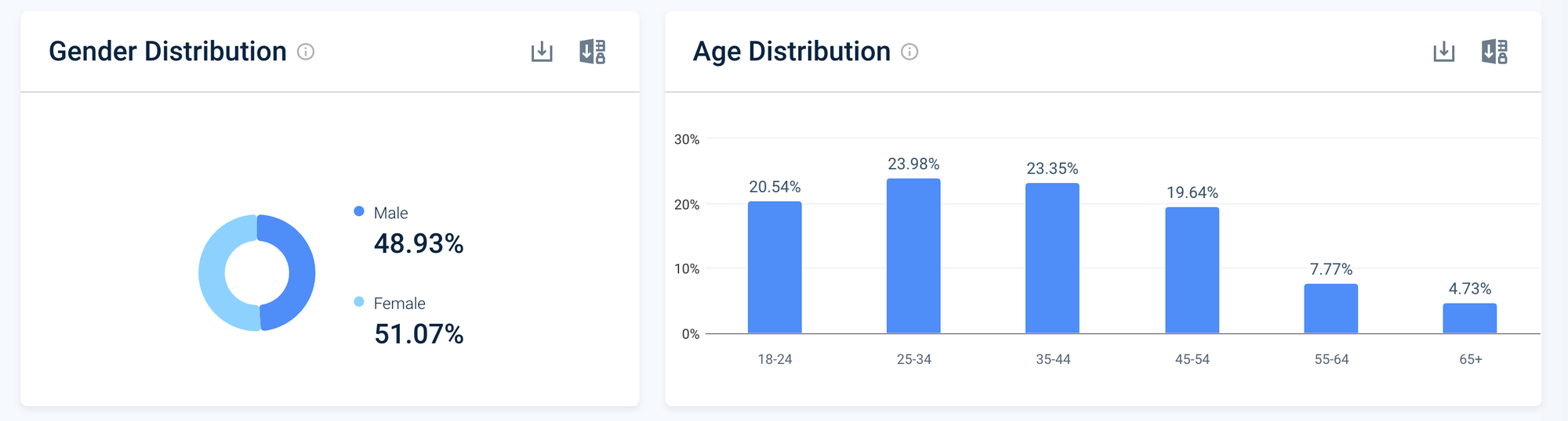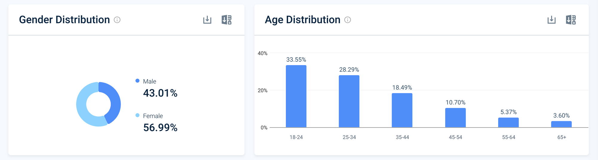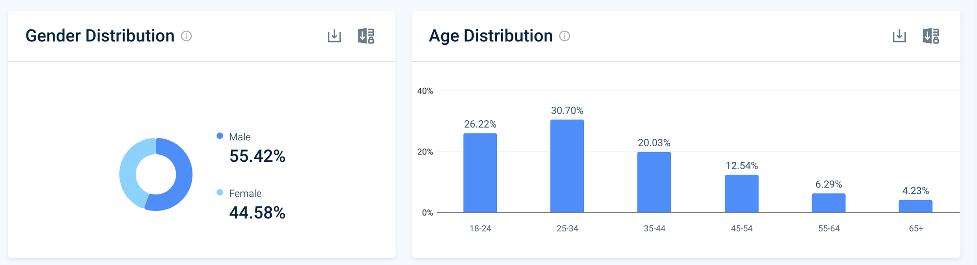 사용자의 연령대는 25세에서 34세 사이가 가장 높은 비율을 차지하고 있으며, 다음으로 18세에서 24세, 35세에서 44세의 순서로 다양한 연령층에 걸쳐 분포하고 있다.