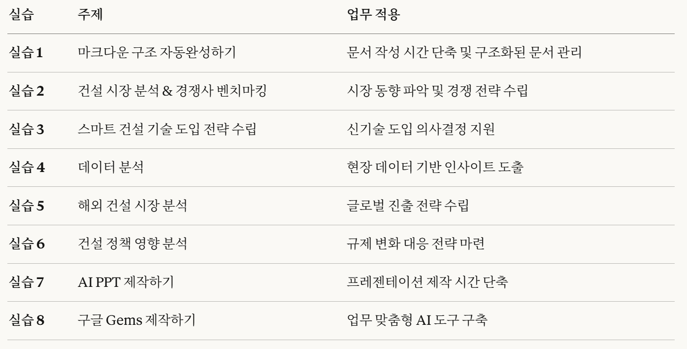 일반적인 AI 교육이 아닌, 건설 시장 분석·정책 영향 분석 등 건설업 실무에 특화