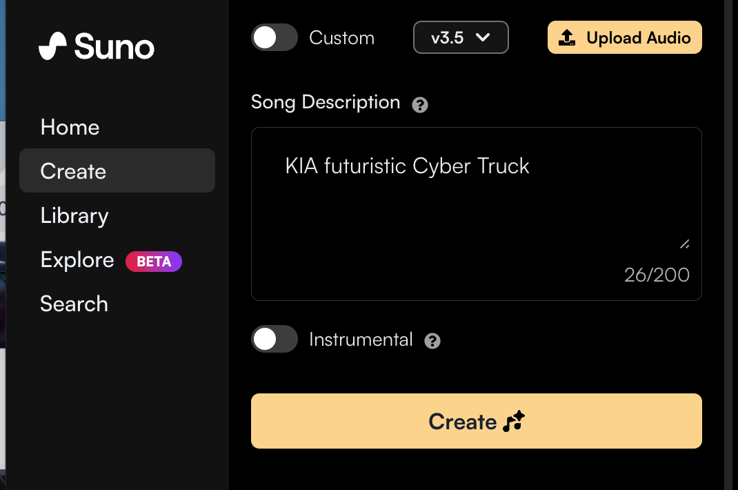 미드저니의 결과값과 어울리는 테마곡을 제작하기 위해 Suno.ai를 활용했습니다. Suno.ai가 최근 v3.5 모델로 업그레이드되면서 그 성능이 눈에 띄게 향상되었습니다. 이제는 간단한 프롬프트만으로도 놀라울 정도로 뛰어난 결과물을 얻을 수 있게 되었습니다.